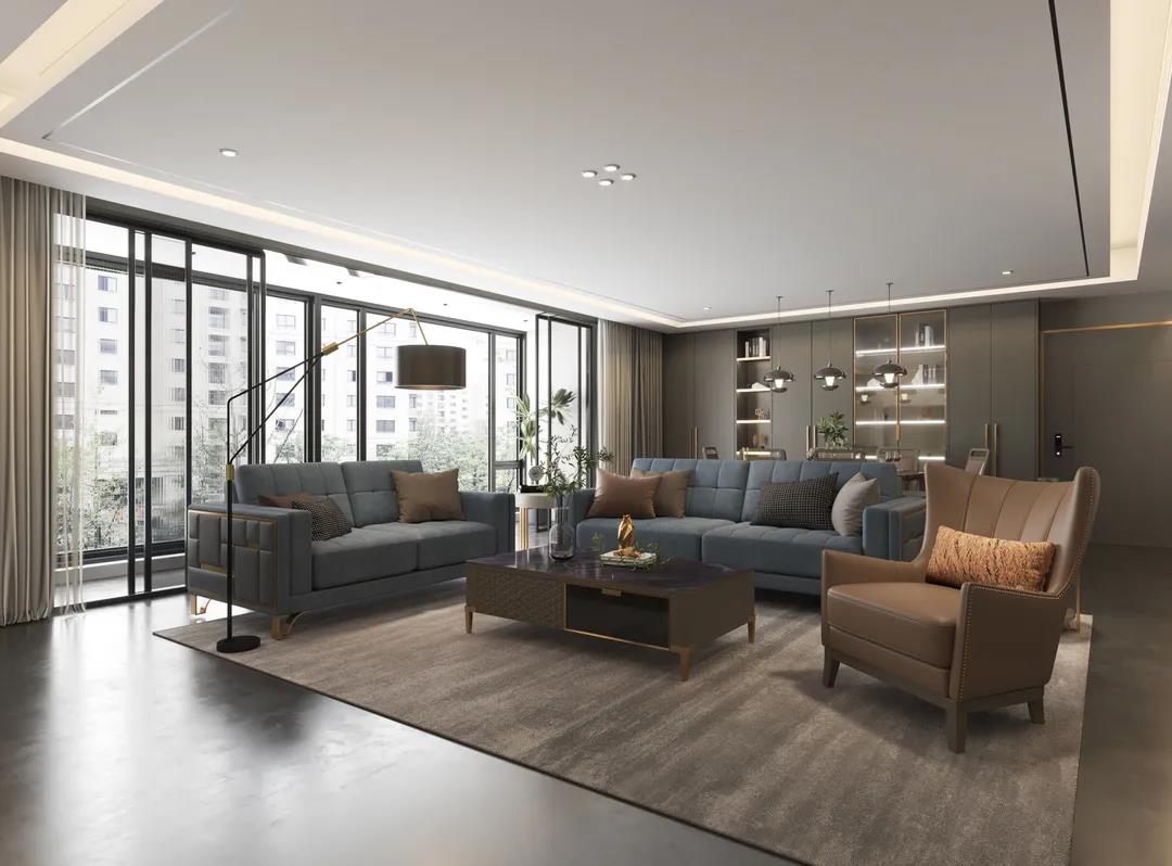 餐桌以简洁干练造型为主,高级百搭的灰色调,软包真皮,金属镶嵌的细节,打造出悠闲奢华、优雅精致的风格,让家的味道从一日三餐中抵达内心深处。